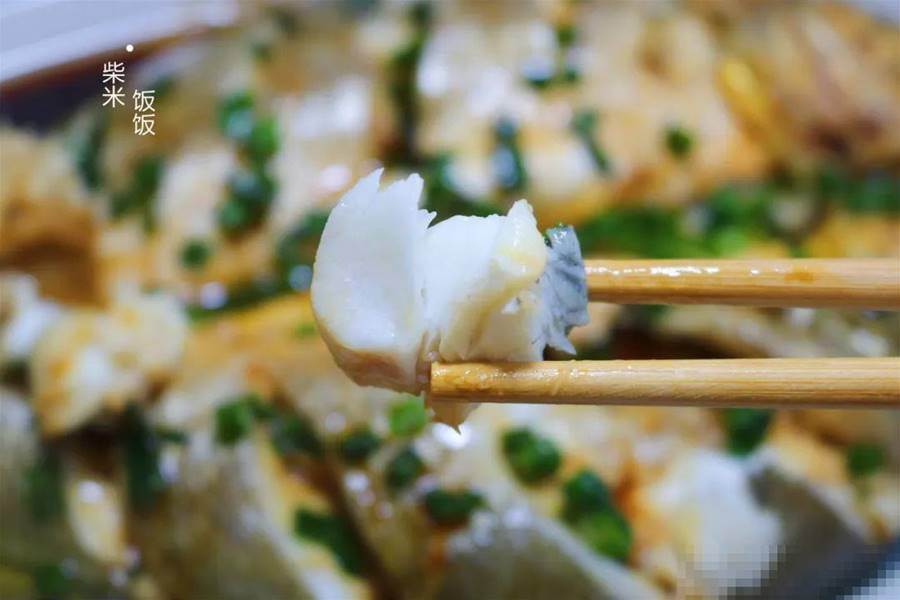 這樣蒸的黃魚肉如蒜瓣,潔白又鮮嫩,蘸著蔥油湯汁吃起來非常鮮美。