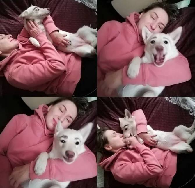 它的臉上有一對超級喜感的蠟筆小新眉毛,一開始收容所的志愿者以為這只狗狗被小朋友惡作劇涂了顏色,但帶回收容所仔細一看才發現這是它天生的特殊花紋!